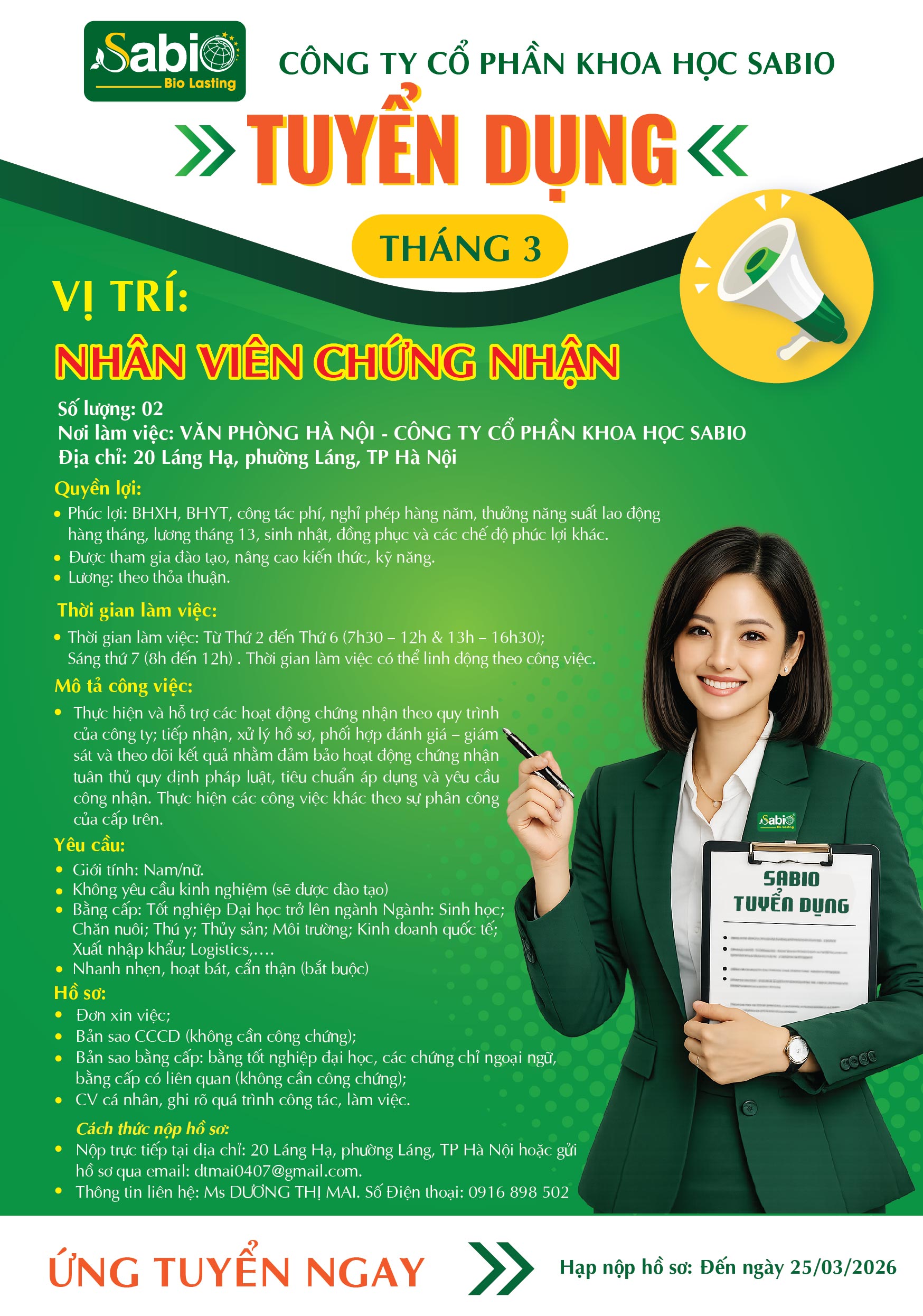 TUYỂN DỤNG THÁNG 03/2026 - VĂN PHÒNG HÀ NỘI